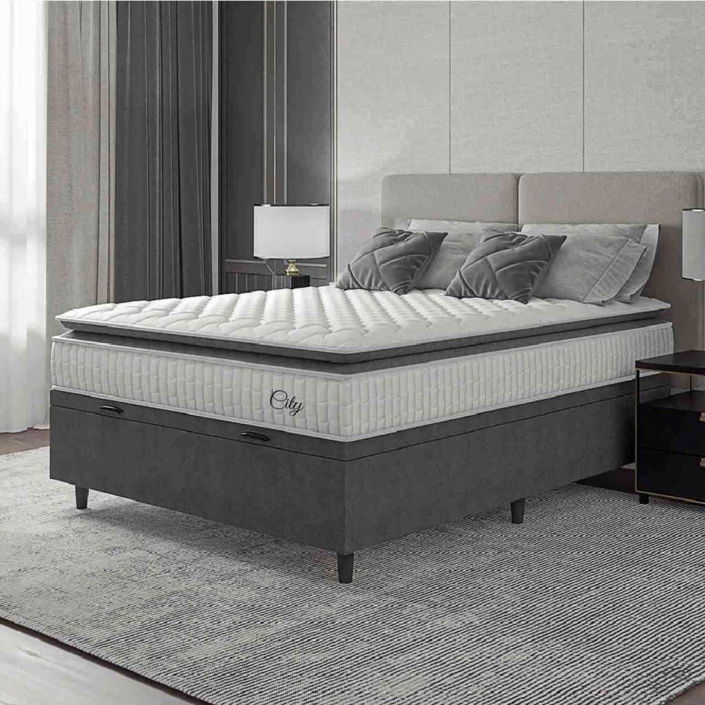 MODELO: Cama Box Baú Casal Colchão Molas Ensacadas City Pillow Top 138x188x64cm