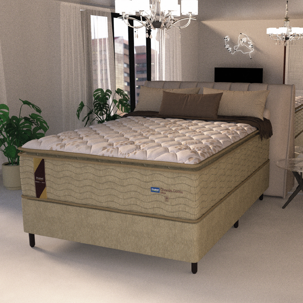 MODELO: Cama Box Colchão Casal Molas Guarda Costas Max Pillow Top Probel Suporta até 180kg por Pessoa
