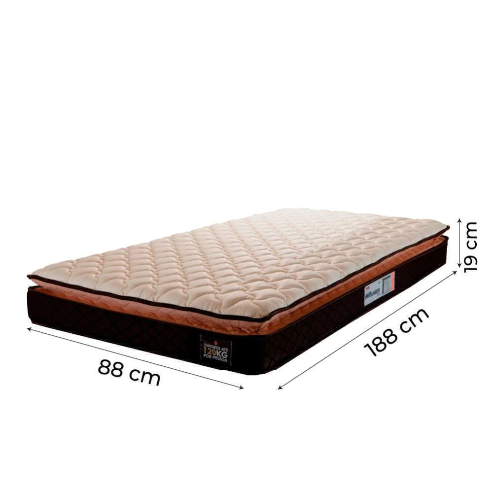 O Colchão de Solteiro Millenium foi desenvolvido, especialmente, pensando no seu bem-estar! Possui espuma de alta qualidade em sua composição, trazendo conforto e durabilidade, além de ser um produto resistente. Conta com uma camada de pillow top para que você tenha uma noite de sono mais tranquila, com garantia de total descanso e qualidade de vida! Suporta até 120kg por pessoa. Ideal para os amantes de colchão de espuma!
