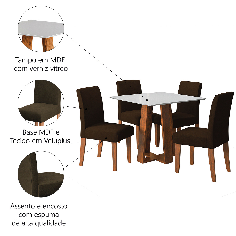 MODELO: Conjunto de Mesa Athenas Quadrada para Sala de Jantar 0,90m com 4 Cadeiras Trieste