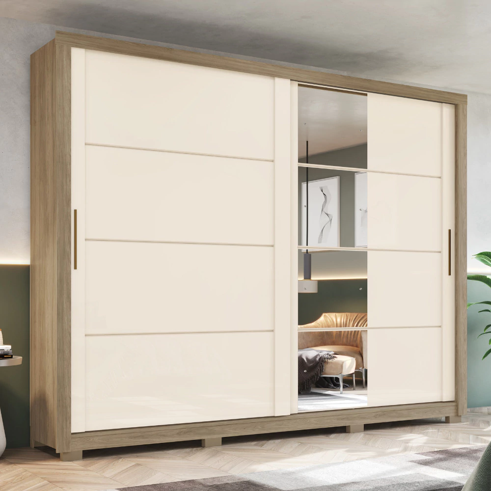 O Guarda Roupa Casal com Espelho Lírio é a escolha perfeita para quem busca sofisticação e praticidade em um só móvel. Seu design moderno conta com portas deslizantes que otimizam o espaço do ambiente, além de um elegante espelho central que amplia a sensação de amplitude no quarto. Internamente, oferece excelente organização com cabideiros super resistentes, prateleiras bem distribuídas e 4 gavetas espaçosas com corrediças telescópicas que garantem abertura suave e durabilidade. Os puxadores modernos e funcionais completam o visual sofisticado, unindo estilo e praticidade. Combina resistência, elegância e funcionalidade, ideal para manter suas roupas e acessórios sempre bem organizados.