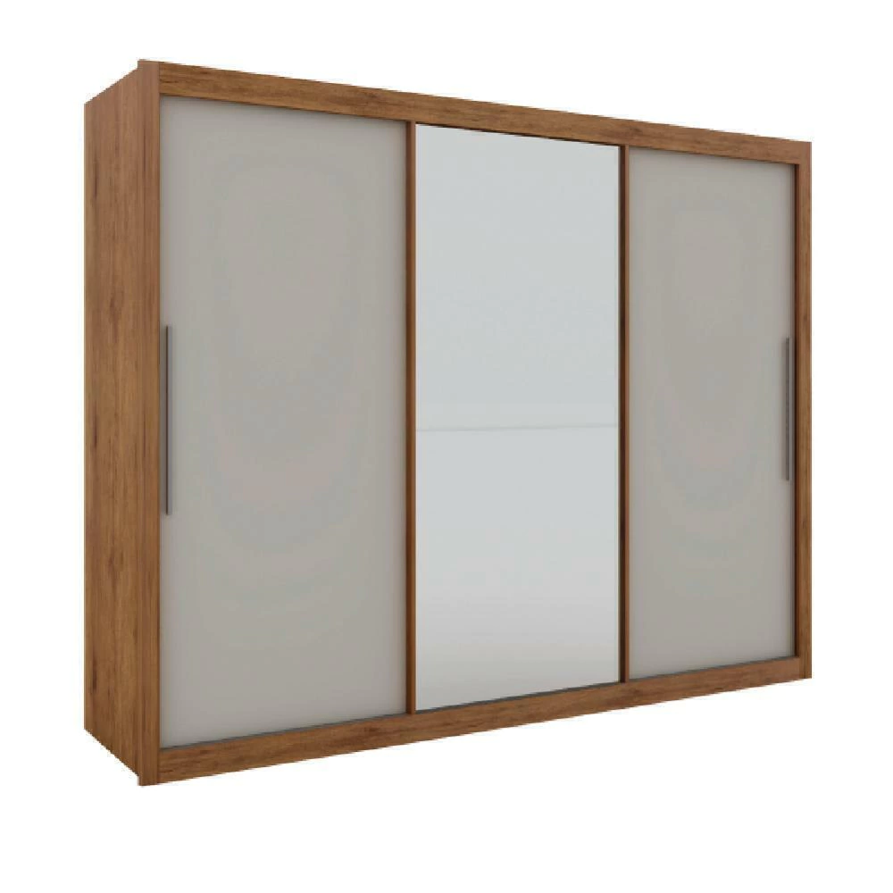 O Roupeiro Real se destaca pela praticidade das três portas de correr, que contribuem para a otimização de espaço, contando com um amplo espaço interno, onde sua estrutura é formada por quatro gavetas, 4 prateleiras e espaço para vestido e calças. O Roupeiro Real conta também com porta central de espelho trazendo mais sofisticação ao produto. O Roupeiro Real agrada pelo seu design compacto e arrojado.