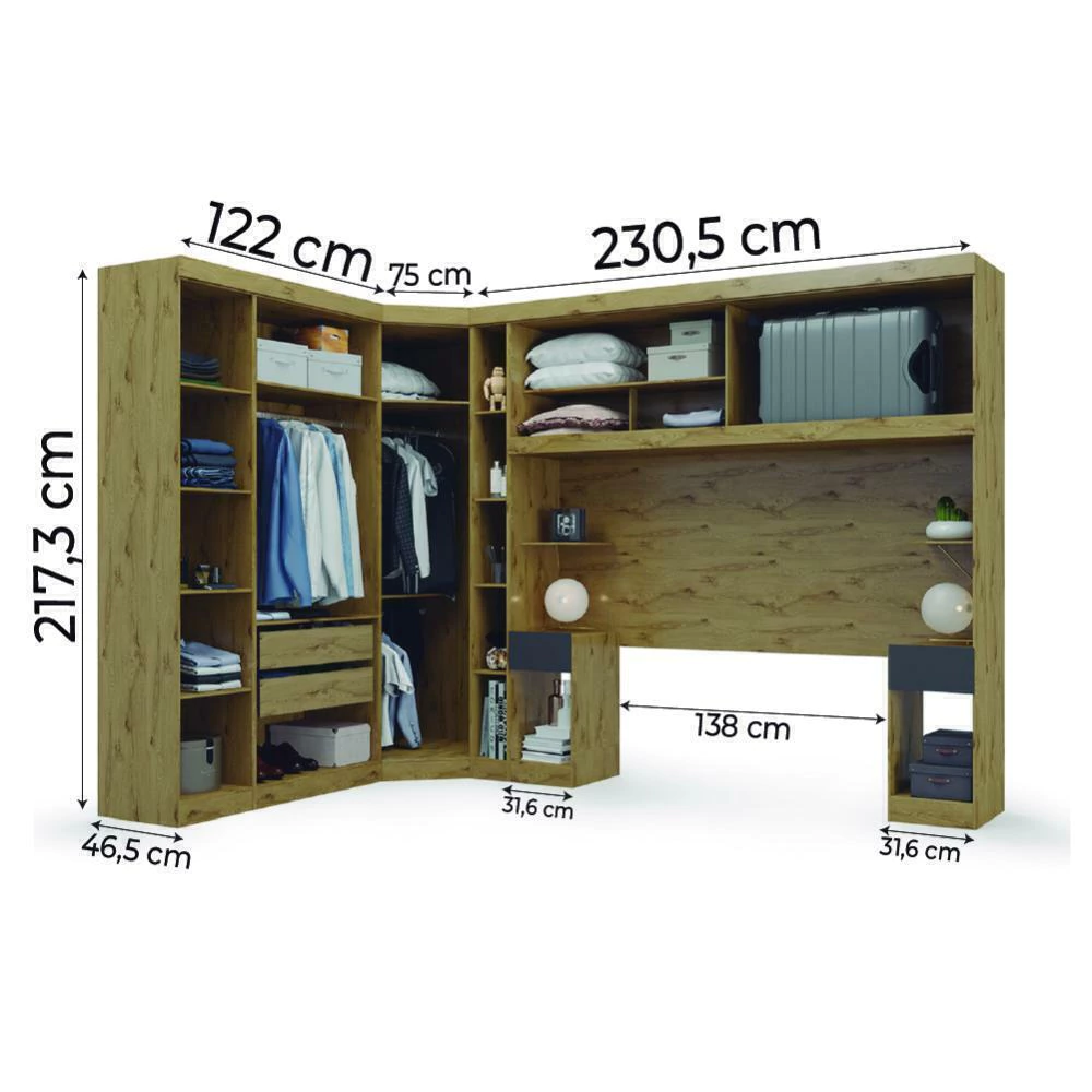 O Guarda Roupas Modulado Genova Plus vai deixar seu ambiente ainda mais sofisticado! Conta com 6 portas, sendo duas de correr, 2 gavetas com amplo espaço, 2 mesas de cabeceira e módulo de canto com nichos espaçosos. Acomoda cama de até 1,38m. Ideal para quem busca praticidade e modernidade.