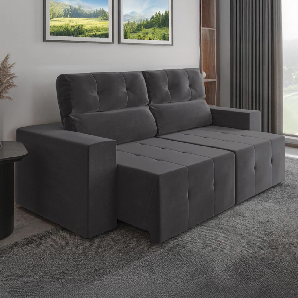 Está em busca de um sofá confortável, bonito e espaçoso? O Sofá Retrátil e Reclinável Fênix é a escolha ideal! Com design sofisticado que combina com qualquer ambiente, oferece máximo conforto graças ao tecido veludo de toque macio e às percintas elásticas, que proporcionam sustentação e flexibilidade na medida certa. A base conta com pés em PVC e rodízios de alta durabilidade, garantindo praticidade no dia a dia, além de suportar até 130 kg por pessoa. O encosto removível facilita o transporte e a instalação em espaços menores. Perfeito para relaxar ou reunir a família e os amigos com muito mais conforto!